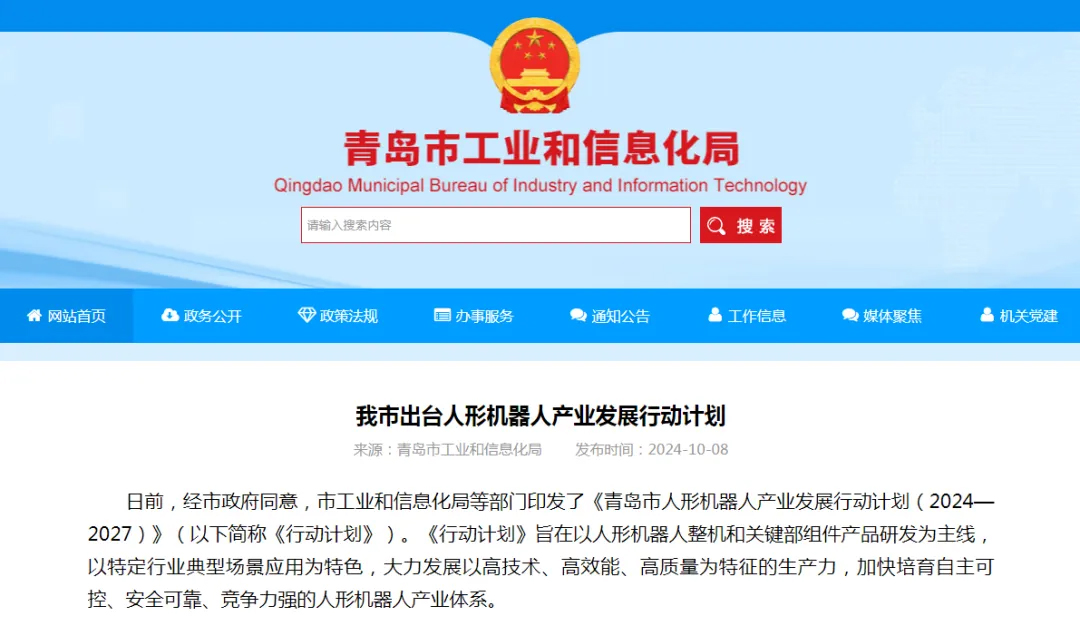 近日,青島市工業(yè)和信息化局等11個(gè)部門聯(lián)合印發(fā)了《青島市人形機(jī)器人產(chǎn)業(yè)發(fā)展行動計(jì)劃(2024—2027)》,明確提出將人形機(jī)器人作為未來智能終端的重要代表,致力于打造國內(nèi)重要的人形機(jī)器人研發(fā)制造應(yīng)用基地。這一行動計(jì)劃的出臺,不僅為青島人形機(jī)器人產(chǎn)業(yè)的發(fā)展指明了方向,更為即將到來的2024第六屆青島國際工業(yè)博覽會增添了濃厚的科技色彩和無限可能。